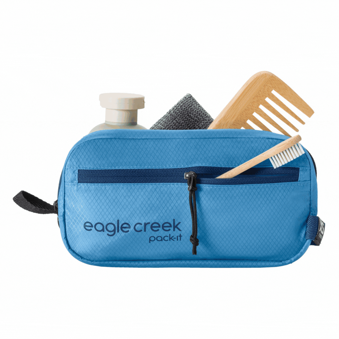 Meet the Pack-It® Isolate Quick Trip XS, your minimalist toiletry solution for any journey. This lightweight, semi-structured bag is designed to keep your essentials protected and easy to find. Crafted from 100% ocean-recycled, water-resistant fabrics, it stands up to wet counters and accidental spills. The main compartment features a full-length zipper and translucent fabric for full visibility, while side zippered pockets keep small accessories organized and accessible.