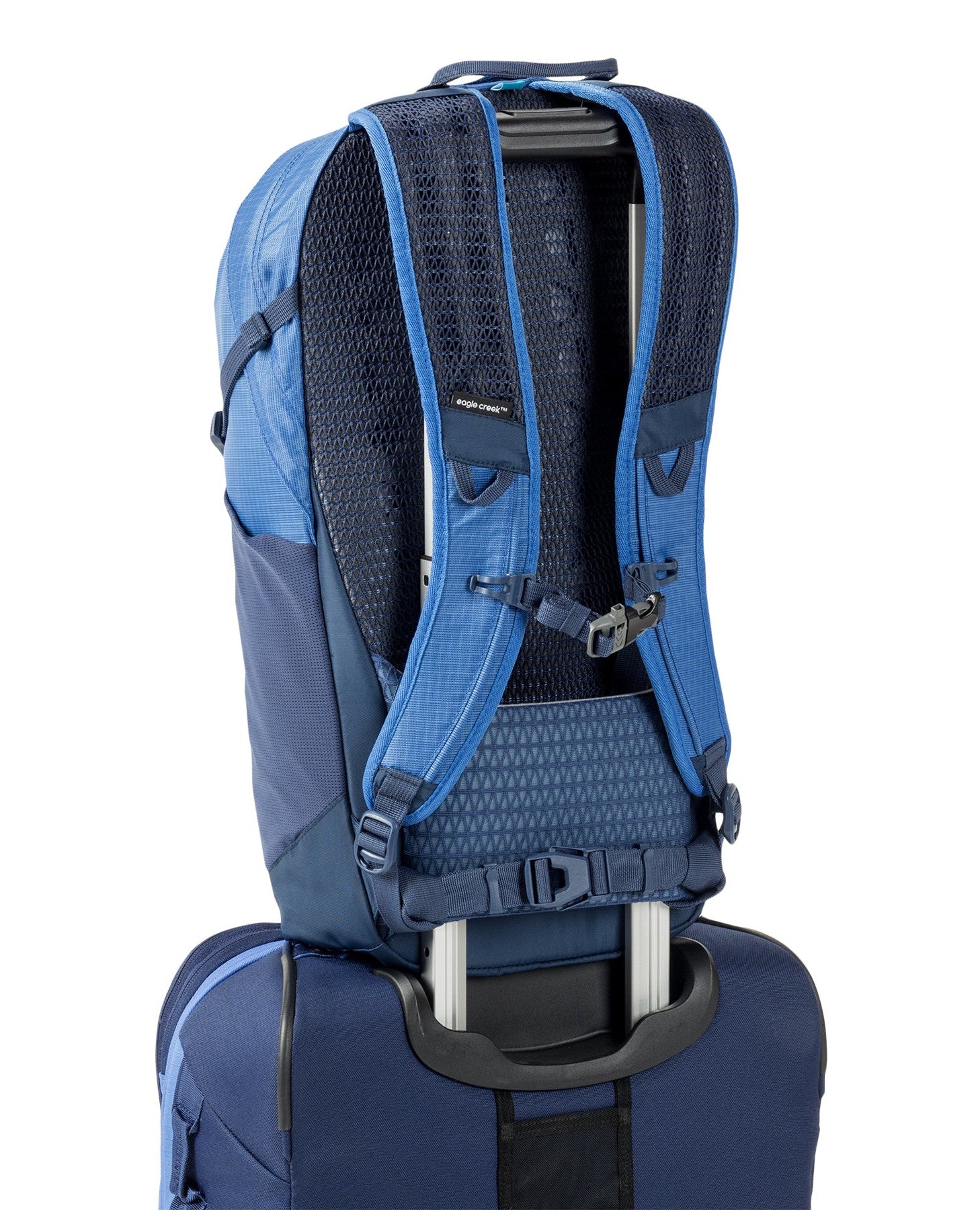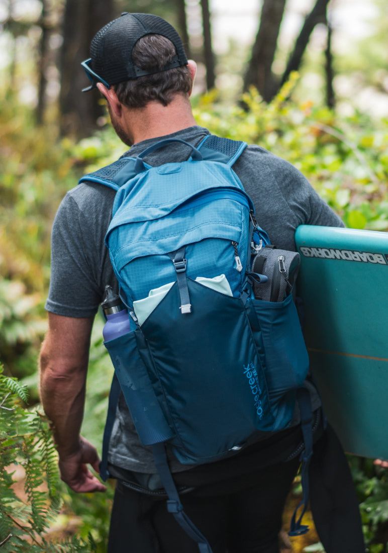 Que vous exploriez les sentiers ou la ville, ce sac excelle dans les deux domaines, grâce à un panneau dorsal et des bretelles ventilés qui vous gardent au frais, ainsi qu'une sangle pour chariot qui se fixe à la poignée de n'importe quel sac à roulettes. Une poche dédiée et des ports pour tuyau intègrent une poche à eau pour une hydratation en déplacement, une ceinture de hanche amovible s'adapte à la terre ou au pavé, et les tissus 100 % recyclés cochent la case "durabilité".