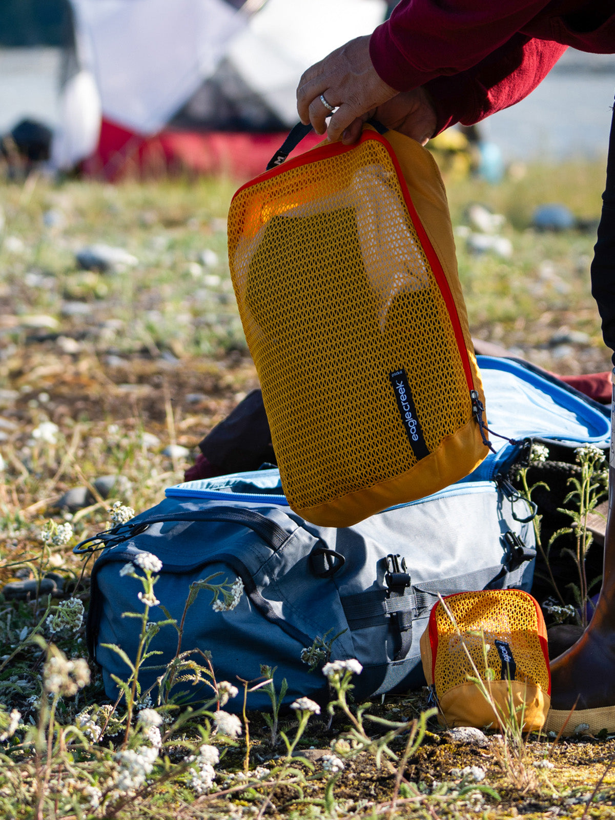 Nettoyez et séchez complètement votre sac Eagle Creek ou vos accessoires de voyage avant de les ranger pour éviter la moisissure, le délaminage, les fuites ou les odeurs nauséabondes. Il n’existe aucun remède contre les dommages causés par la moisissure. Ranger votre équipement ou vos accessoires alors qu'ils sont humides (même un peu) pourrait ramollir le revêtement en polyuréthane, coller à lui-même et potentiellement se détacher du tissu principal. Une exposition prolongée à l’humidité rendra les revêtements collants. Rangez votre équipement et vos accessoires dans un environnement frais et tempéré. N'empilez pas d'objets lourds sur votre équipement et vos accessoires et, si possible, remplissez les sacs de vêtements ou de papier froissé pour aider à conserver leur forme. Les odeurs, les rayures, la décoloration et les éraflures sont considérées comme des dommages esthétiques, n'affectent pas le fonctionnement du sac et ne sont pas couvertes par les garanties Eagle Creek.
